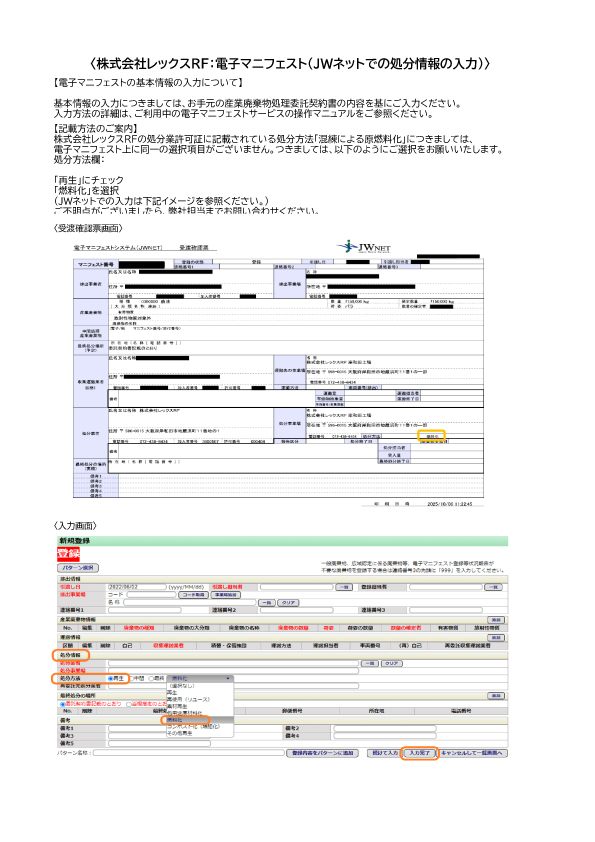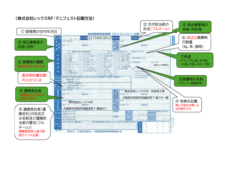 ・紙マニフェスト記載例 ・電子マニフェスト入力例